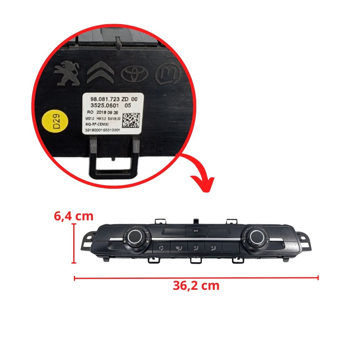 Comando Ar Condicionado S/ Desembaçador Expert / Jumpy 2018 A 2024 98081723ZD